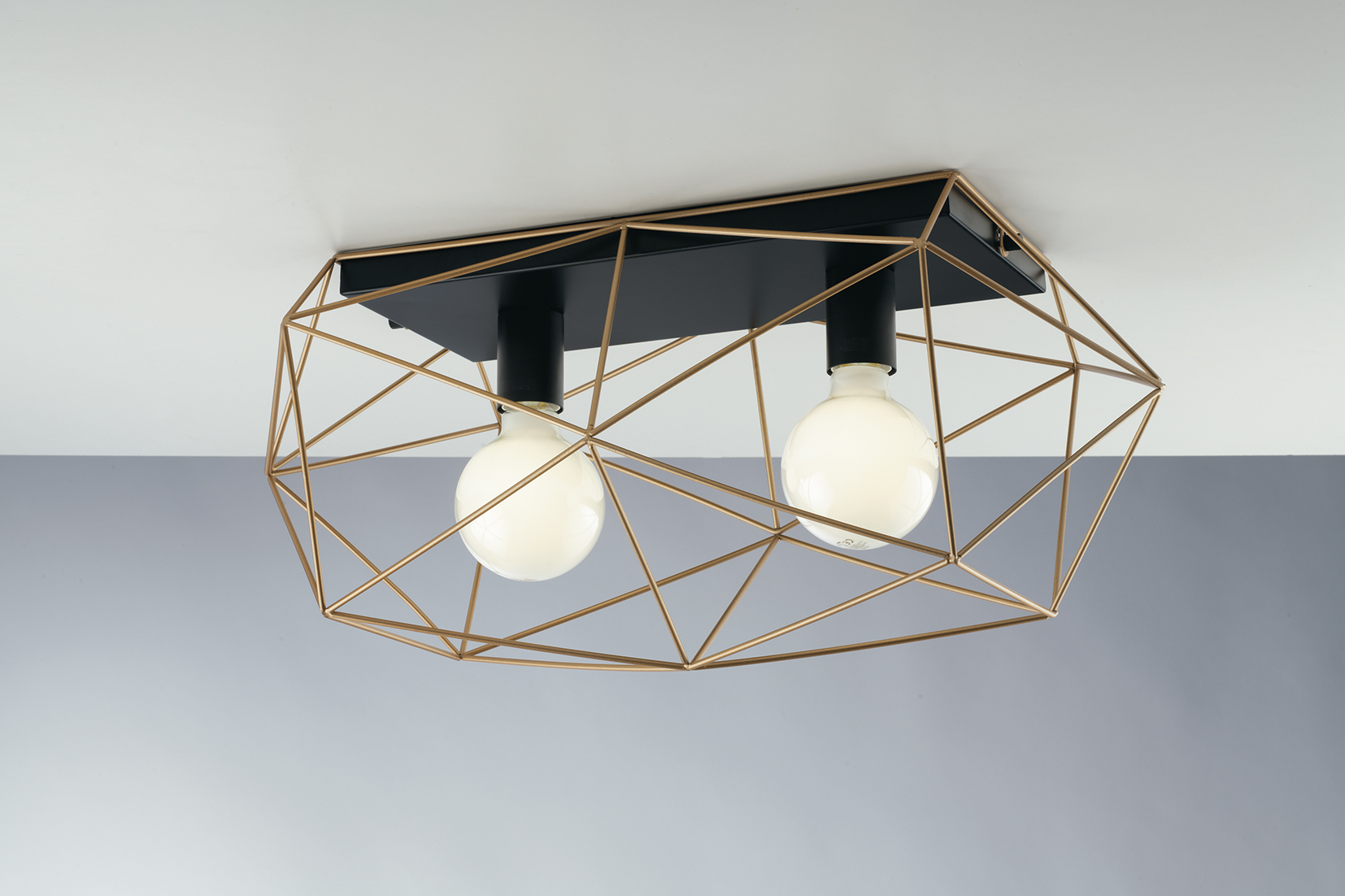 PLAFONIERA ABRAXAS NERA/ORO 2XE27 40X18,5X26,5CM - Luce Ambiente e Design