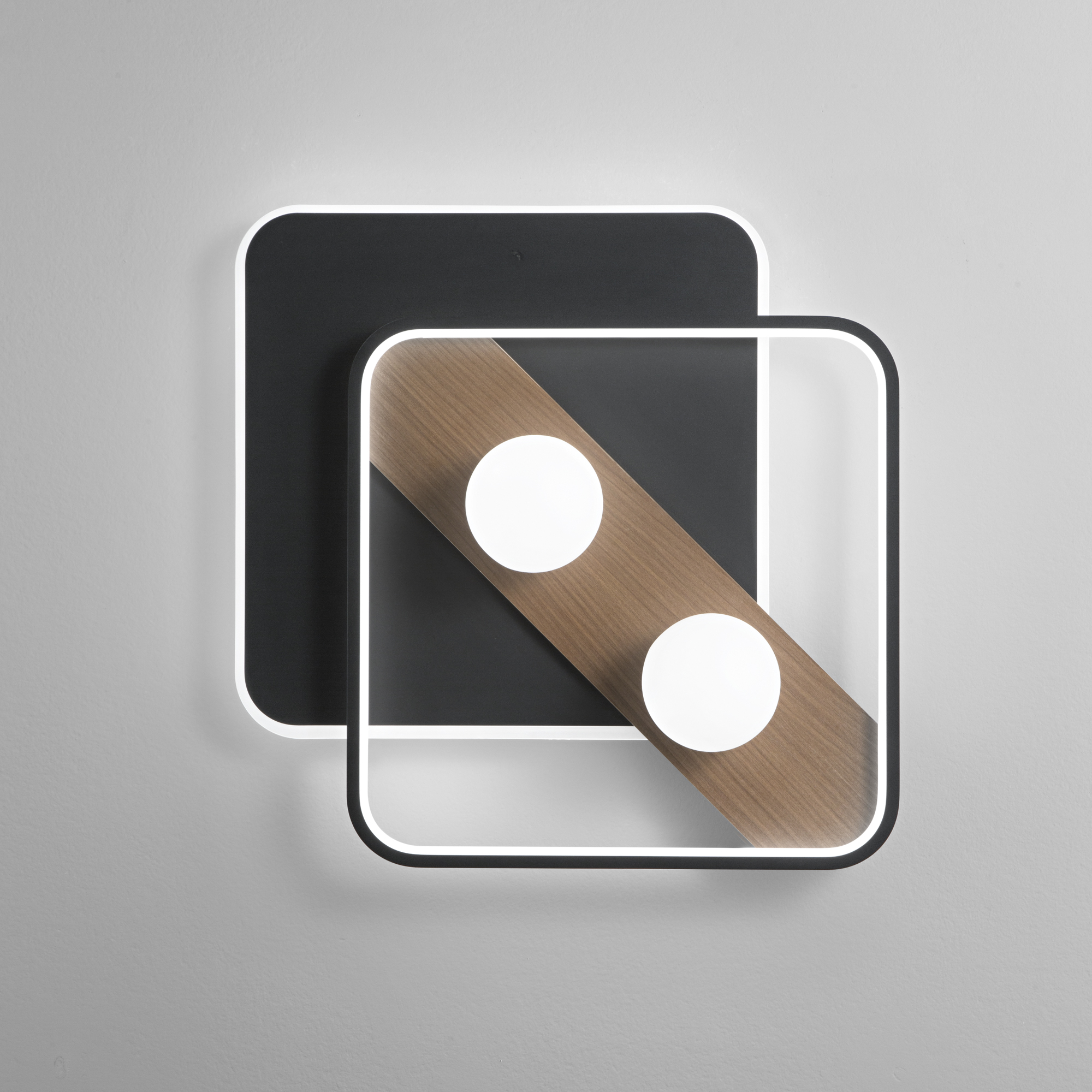 PLAFONIERA LED CRICKET NERA/LEGNO 40W 4540LM CCT 50X40X8CM - Luce Ambiente e Design