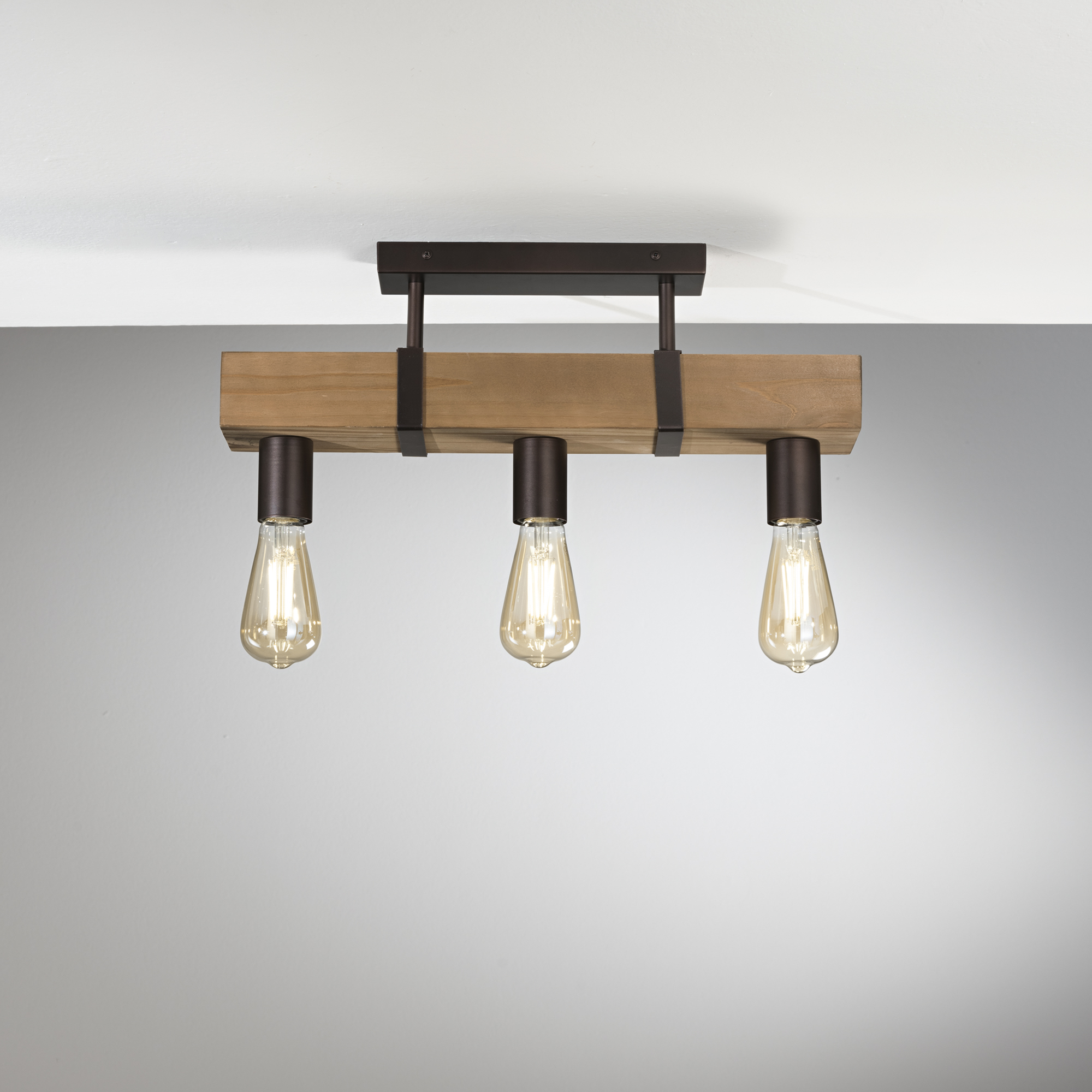 PLAFONIERA TEXAS LEGNO 3XE27 50X10X22CM - Luce Ambiente e Design