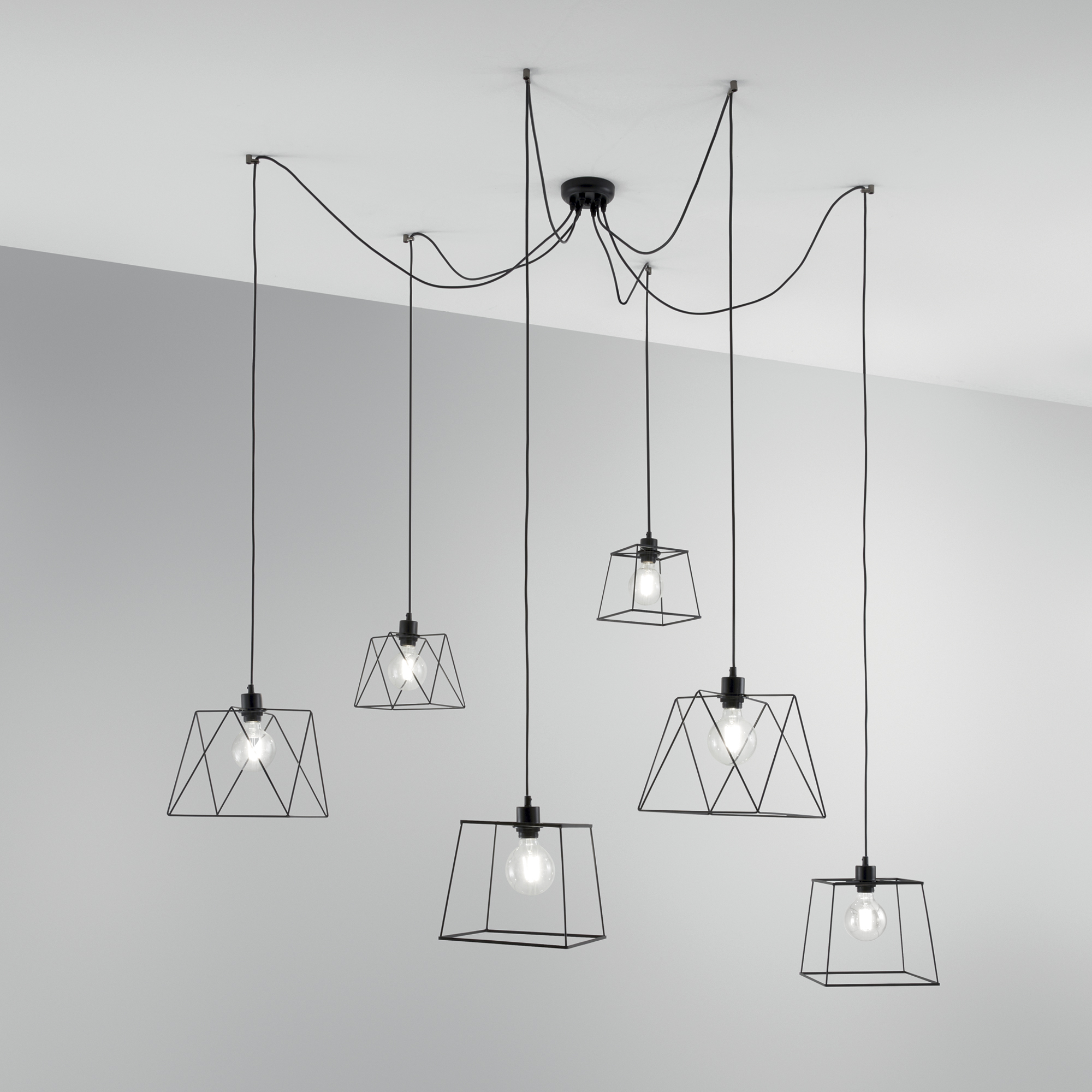 SOSPENSIONE BROOKLYN POLIGONALE NERA 6XE27 250CM - Luce Ambiente e Design
