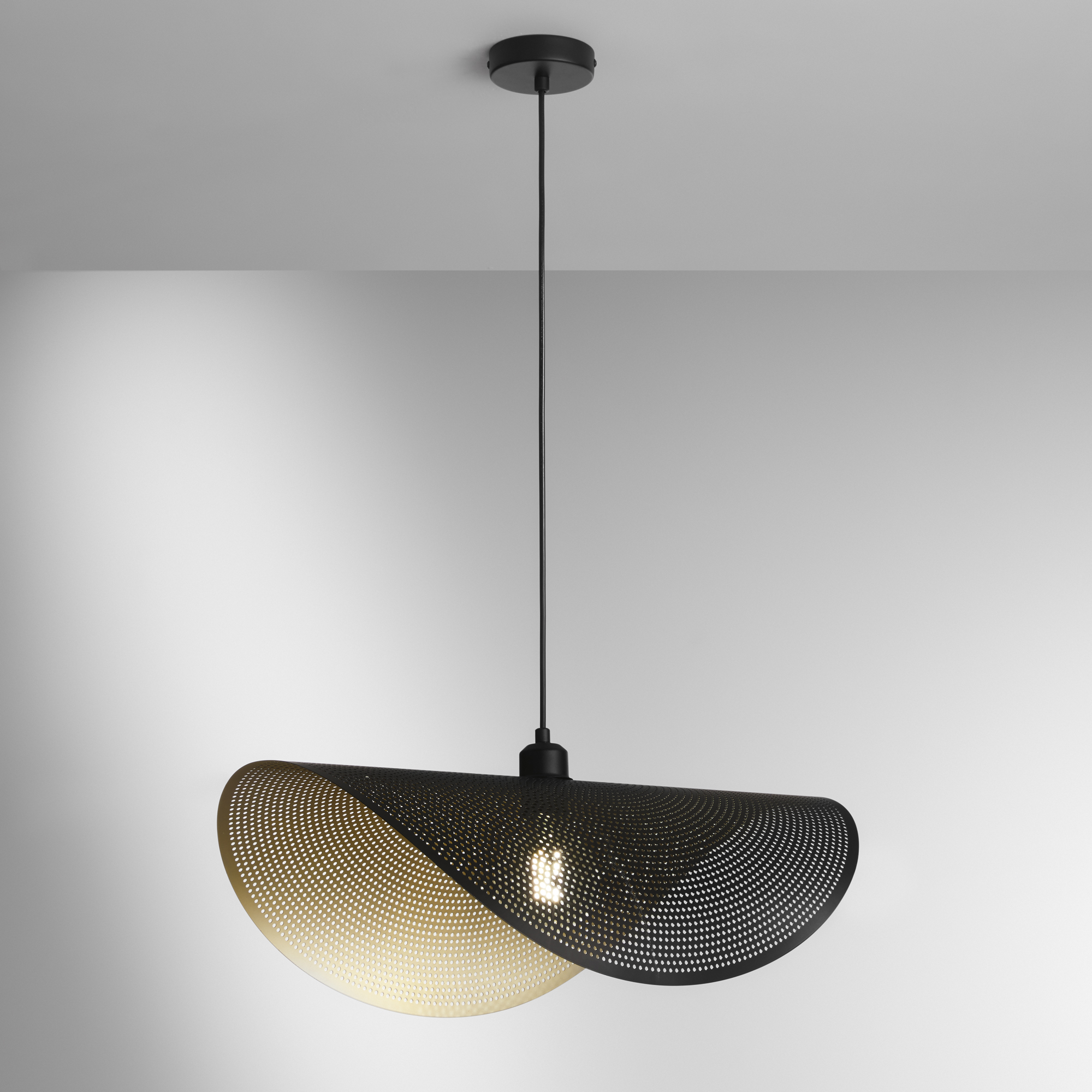 SOSPENSIONE RHEI-DOT NERA/ORO 1XE27 60X33X150CM - Luce Ambiente e Design